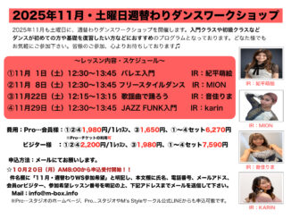 2025年11月 土曜日週替わりダンスワークショッ […]