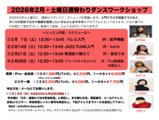 2026年2月 土曜日週替わりダンスワークショップ […]