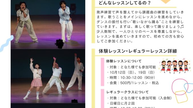 現在、日曜日に月2回開講中のダンス&ボーカルクラスの体験レッスン会を開催します!!