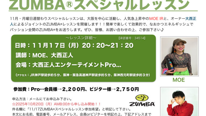 2025年11月も月曜日の夜に、ダンスフィットネスとコンディショニングの週替わりレッスンを開催します。
