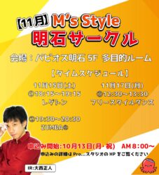 2025年11月のM’s Style明石サークルのスケジュールをお知らせします!!
